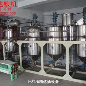 1-2噸精煉設(shè)備是由精煉罐、脫色罐和過濾器及油泵和電機(jī)電控系統(tǒng)組成,可實現(xiàn)毛油脫膠、脫酸、干燥和脫色功能。