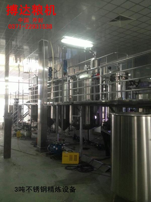 大豆油精煉設(shè)備熱脫皮工藝,今年來,大豆油熱脫皮工藝得到較快的發(fā)展和推廣,大豆油熱脫皮紅衣的形式很多,經(jīng)過處理后的大豆直接進(jìn)入流化床加熱干燥,使表面溫度達(dá)到75-92攝氏度,大豆所含水分9%左右,這主要是為了加熱大豆皮和表層,皮松脆易于裂開。然后由輥破碎機(jī)將大豆對半破開分為兩瓣,并落入撞擊機(jī)利用撞擊機(jī)作用使豆皮從仁粒上松脫下來,經(jīng)吸風(fēng)分離器進(jìn)行脫皮分離,經(jīng)部分脫皮的半粒狀大豆再經(jīng)過齒輥破碎機(jī)破碎成符合軋坯要求的粒度,而后又經(jīng)撞擊機(jī)和多級撞擊和多級吸風(fēng)分離器進(jìn)行第二次脫皮分離,分離出的豆仁至下道工序,豆皮收集后送至豆皮倉庫,該工藝與冷脫皮工藝相比周期短,短時(shí)間的高溫處理減少了大豆油中油脂的變質(zhì)和蛋白質(zhì)的變性。熱大豆破碎后的粉末度減小,這將更有利于皮仁的分離,減少皮中的含仁量。經(jīng)脫皮后的熱豆??芍苯舆M(jìn)行軋坯,或?yàn)榧訜彳浕笤偃ボ埮?,這將大大降低生產(chǎn)過程中的蒸汽消耗。
